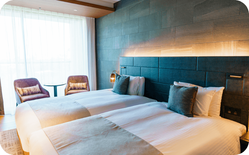 館内電話や客室マネジメントシステム、情報提供サービスなど、ホテル運営を支えるトータルソリューションを提供しています。
