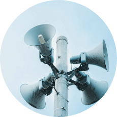 災害情報を迅速に伝達し、安心・安全な暮らしを支える防災行政無線や、ケーブルテレビを活用した告知システムを構築しています。