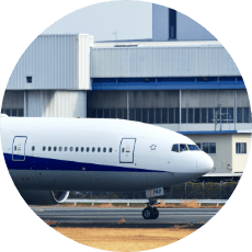 飛行機の駐機位置誘導や管制を行うシステム、空港内の情報提供サービスなど、さまざまなソリューションでお客様を支援しています。