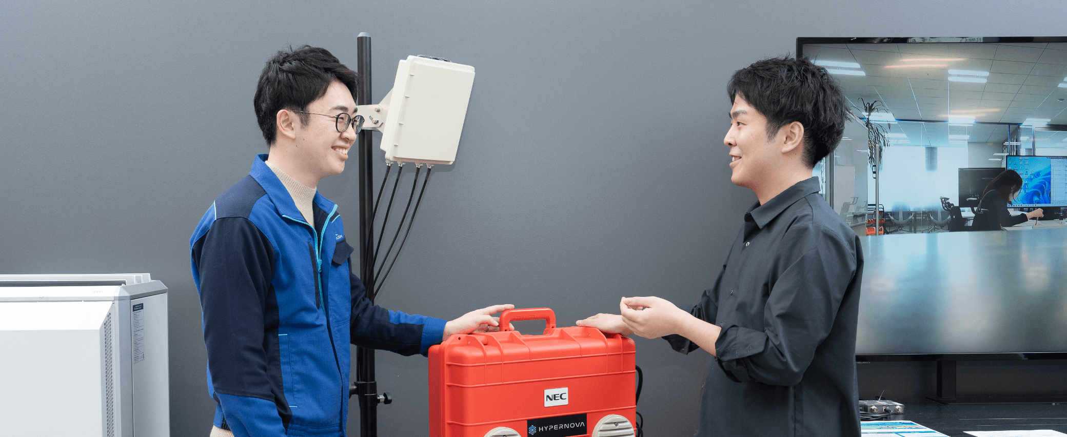 プロジェクトチームでは具体的な課題について顧客にヒアリング。「クレーン操作などの危険な作業を遠隔で行いたい」「倉庫内の在庫確認などの作業を無人化したい」といったニーズを掘り起こした。これらの課題を解決するためにローカル5Gシステムをどのように活用すべきかを提案し、実際に工場に「HYPERNOVA」を持ち込んで実証実験を行うことになった。