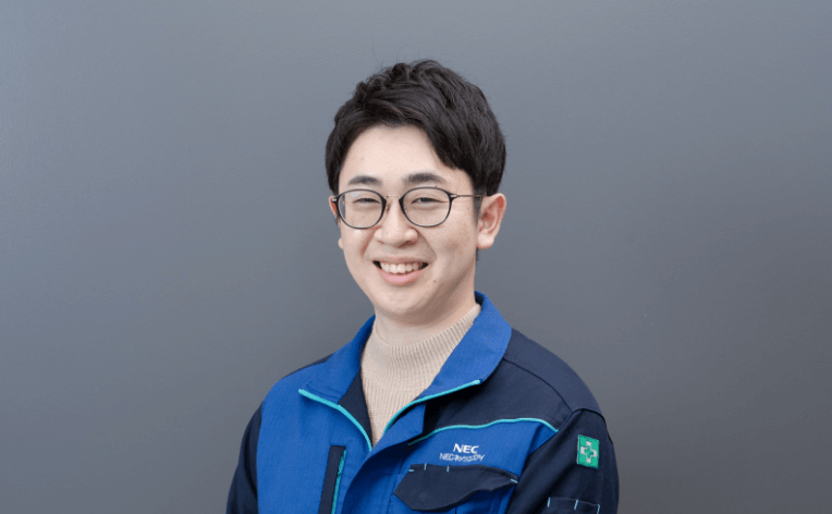 無線通信のエンジニアとして、ローカル5Gの販促から提案、実行と、上流から下流までトータルに携わっています。今回のプロジェクトについては、提案担当のM.Kさんから「こういう案件があるんですが」と相談されたところから携わりました。実際に現地に足を運び、提案内容を具体化させていく中で、エンジニアとして培ってきた知見が十分に発揮できたことは嬉しく思っています。大規模な工場の中でローカル5Gの実績がつくれたことは大きな成果となりました。