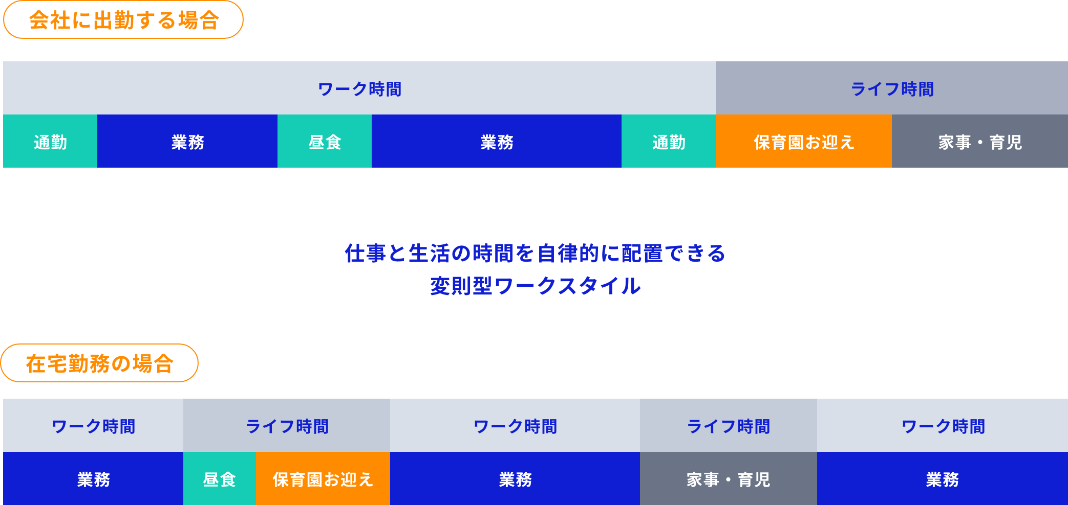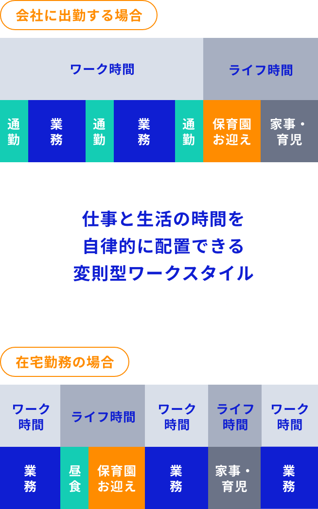 仕事と生活の時間をフレキシブルに配置し、より一人ひとりの生活スタイルに合わせた働き方を実現しています。