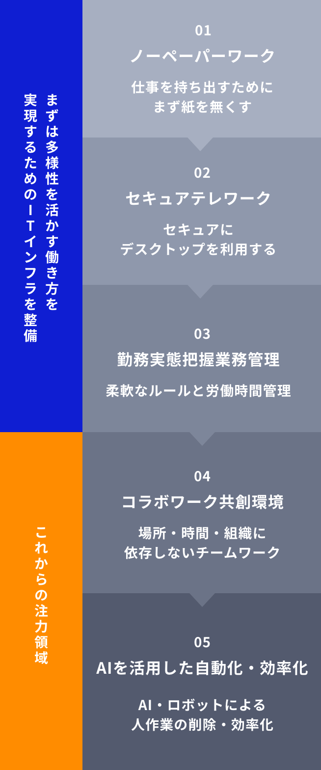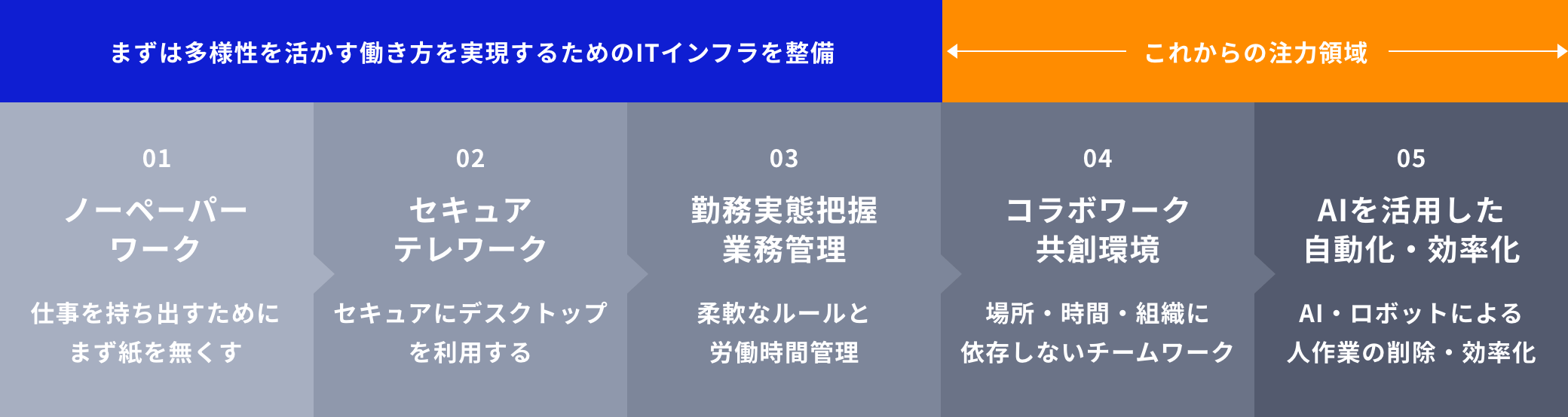 | 目的 | ワークプロセス改革による生産性向上、効率性向上、イノベーションの創発 |