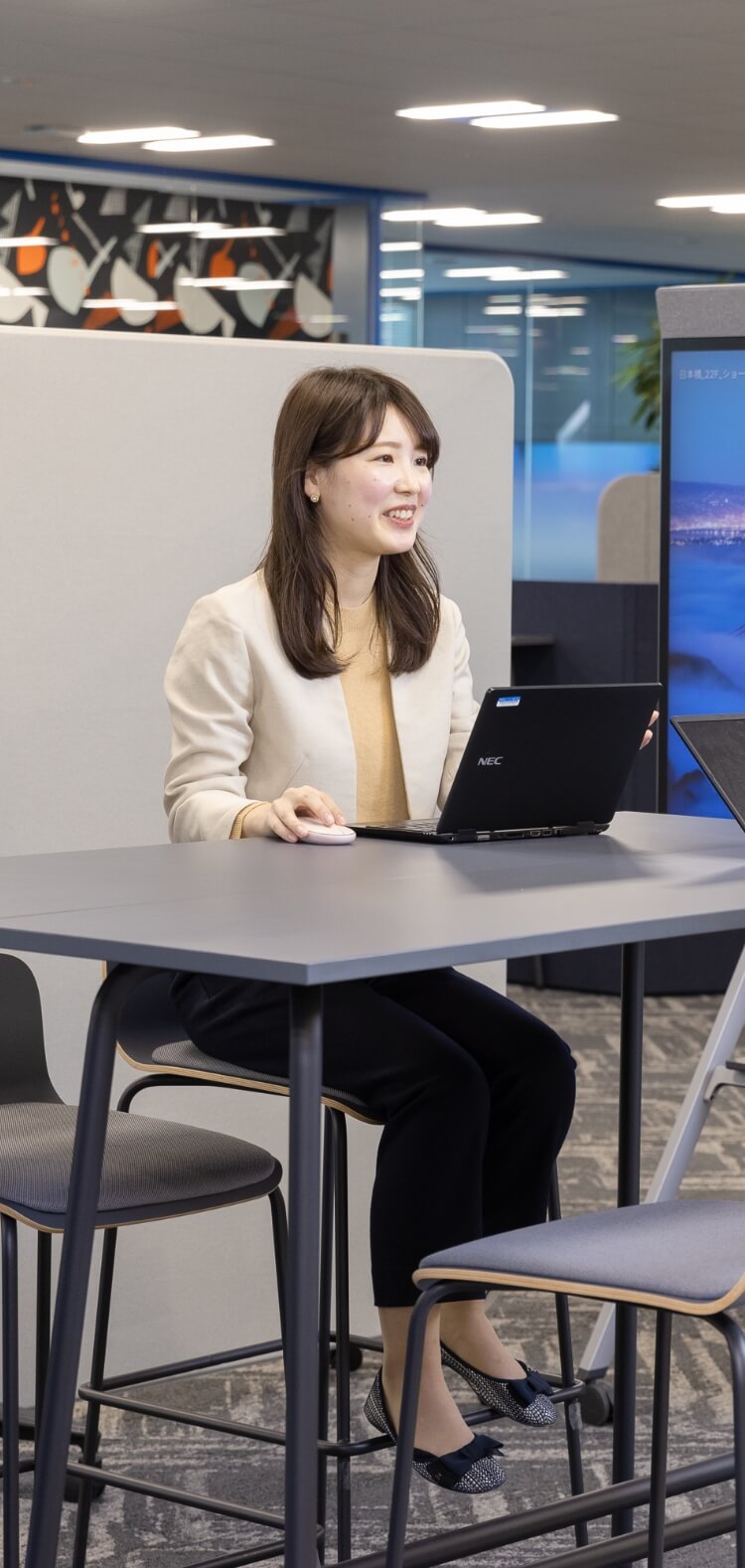 学生時代はプログラミングやWebデザインなどを学ぶ。IT企業を広範囲に検討する中で、幅広い事業に関わるSIerであること、NECネッツエスアイのオフィスがきれいで、働きやすそうな環境であることに注目。本来の風通しのよい社風に加え、様々なICTツールを駆使して社内コミュニケーションの活性化に取り組んでいる姿勢に惹かれて入社を決める。現在はペーパーレス推進事業として、お客様の文書管理コンサルティングに携わる。